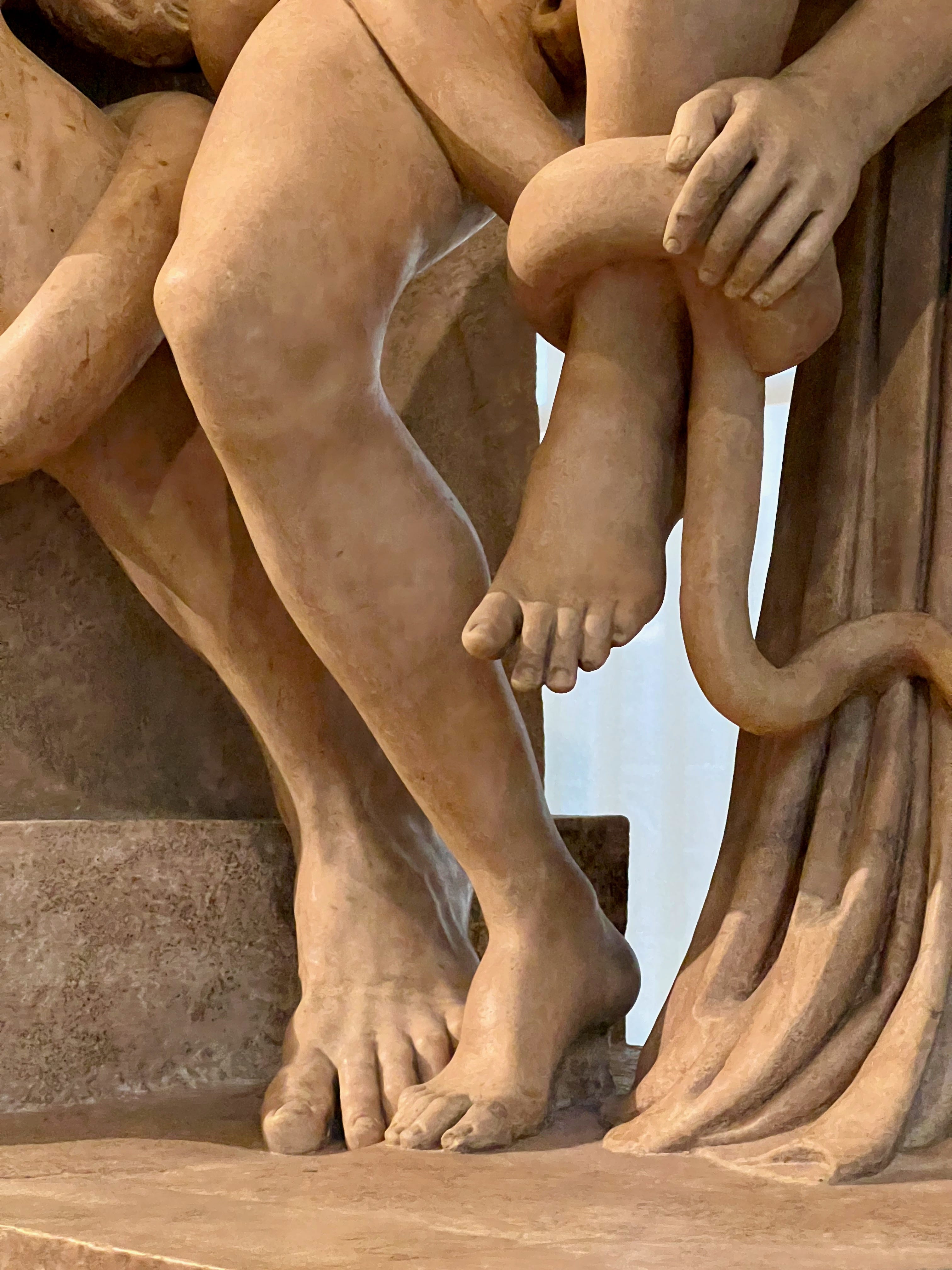 Research on Michelangelo led Rita to fall in love with the exquisite lines and muscles he carved into Carrara marble. But her newly trained eyes got snagged on the Laocoön, carved in 200 B.C.E. because the lines and muscles of the priest who had tried to expose the ruse of the Trojan Horse looked just like Michelangelo’s.