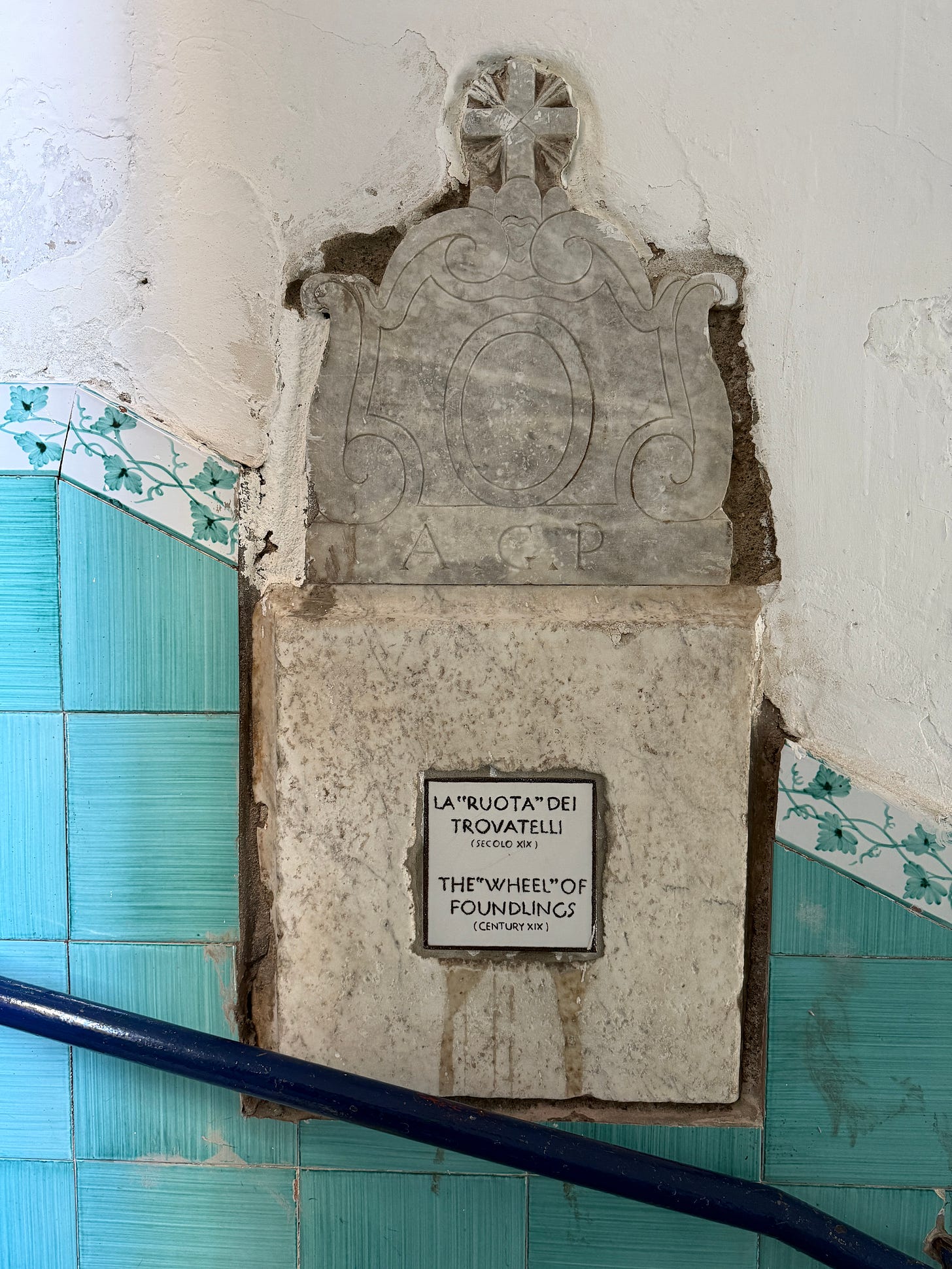 Take you to Vietri sul Mare, where the ceramics are made, and walk through its residential alleys, where you’ll find this window where poor people would leave their children to be raised by nuns.
